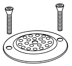 The Mildont® 503A is compatible with non-standard 3-inch drain strainers having two perimeter bolts, however for this type of installation you must trim the Mildont® 503A with scissors to create tabs for the bolts pass through.